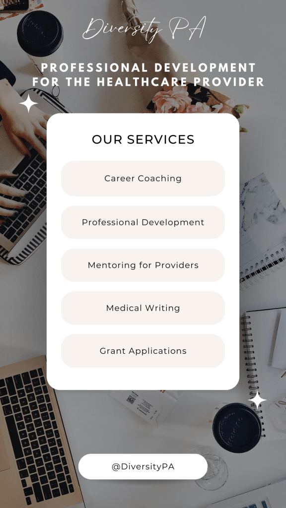 At DiversityPA, we are dedicated to empowering healthcare professionals, including physician assistants and other healthcare employees, to achieve their full potential. Our mission is to provide personalized mentoring, career coaching, and professional development services that help you create the life and career you envision. With a deep understanding of the unique challenges faced in the healthcare industry, we tailor our approach to meet your individual needs. Whether you’re looking to advance in your current role or explore new opportunities, we are here to support and guide you every step of the way. Trust us to be your partner in professional growth, as we help you navigate your career path with confidence and clarity.